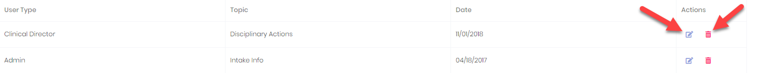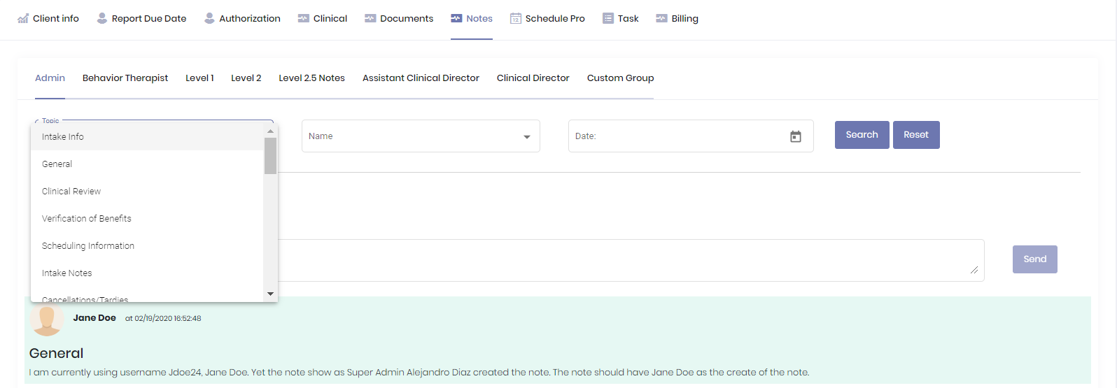 2. Notes are separated by user type and by note topic. Meaning, the note topics that will appear in the clinical section are dependent on the type of user.