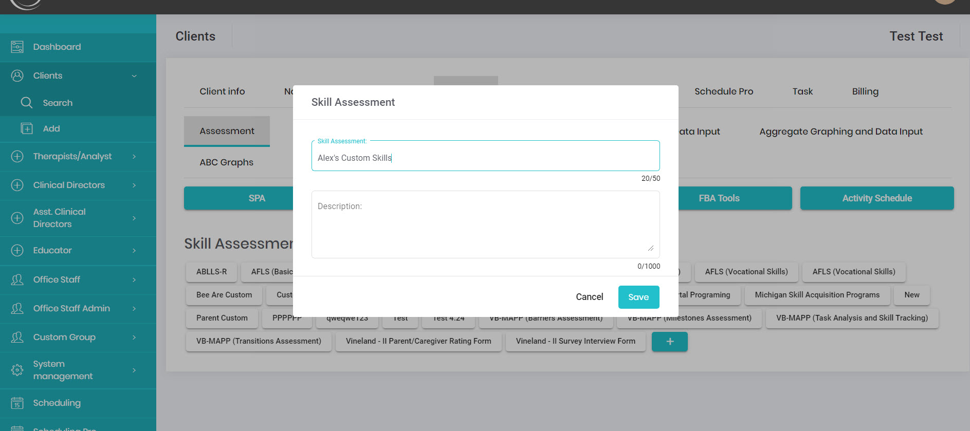 6. Once you hit save, you can add targets under the skill. You can also add skills and target to existing Assessments and Domains in the programming section. See the image below as an example.